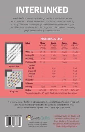 Interlinked is offered in 4 sizes, and can be easily made with colors or neutrals, or any fabrics you choose!